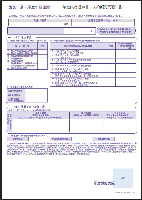 年金の受給が認められた場合には次の年金証書と年金支給決定通知書が届きます。